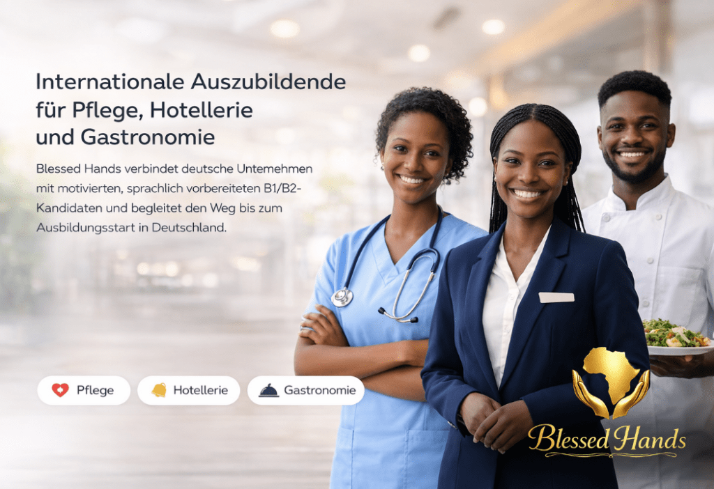 Blessed Hands ist für Unternehmen in Pflege, Hotellerie und Gastronomie, die motivierte Auszubildende oder Fachkräfte suchen und dabei nicht nur Wert auf Besetzung, sondern auch auf Vorbereitung, Integration und Verlässlichkeit legen.